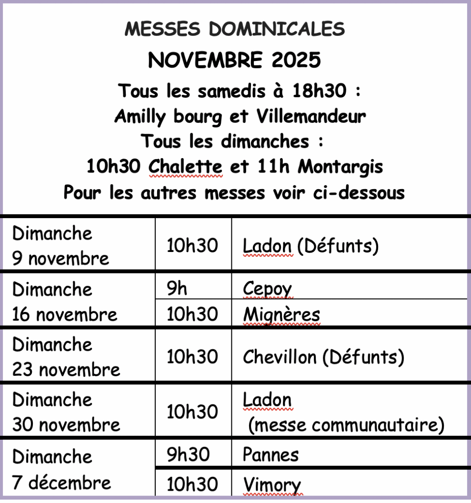 Tous les horaires des messes de week-end de ce mois de novembre. Catégories : ActualitésMesses dominicales