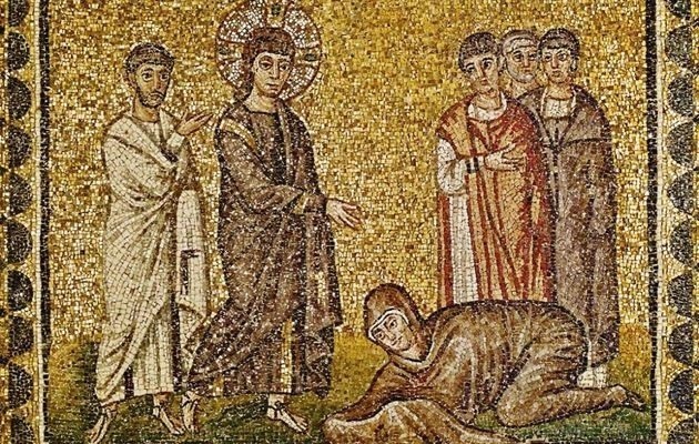 Vous pourrez trouver d’autres commentaires sur la guérison de la femme hémorroïsse, faits à partir de la représentation de la fesque ci-dessus, sur la page internet du journal Croire/La-Croix (lien ci-dessous).