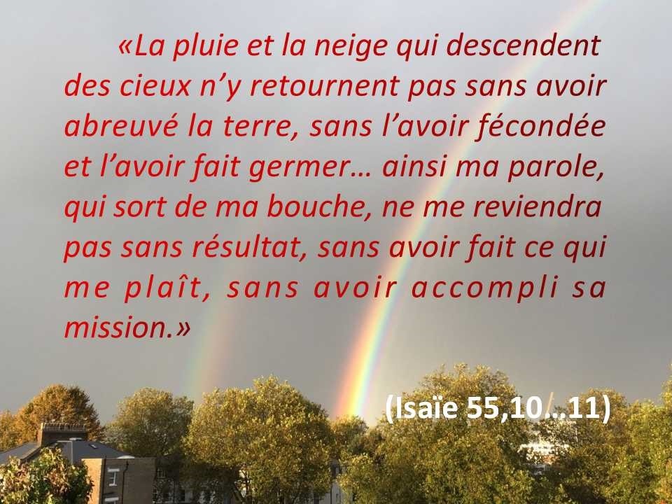 Je termine simplement sur la notion de joie qui ressort des lectures du temps de Noël: notre grande joie de recevoir tant de Miséricorde divine, qui nous remet debout, et avancer sur le chemin d’humanité, et progresser ensemble dans la foi.
